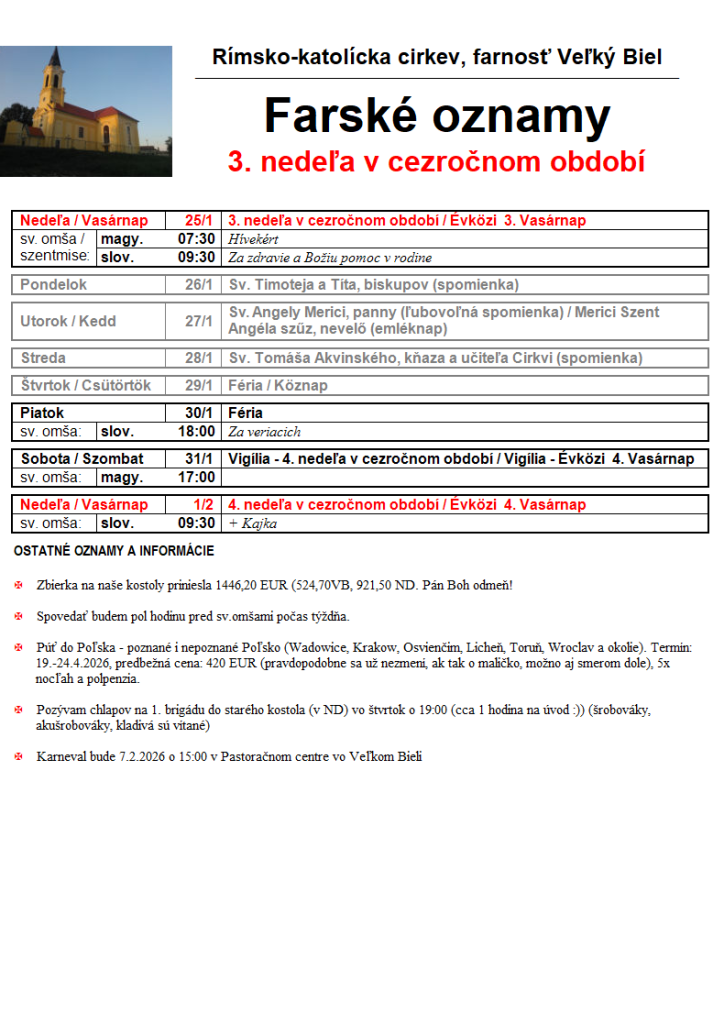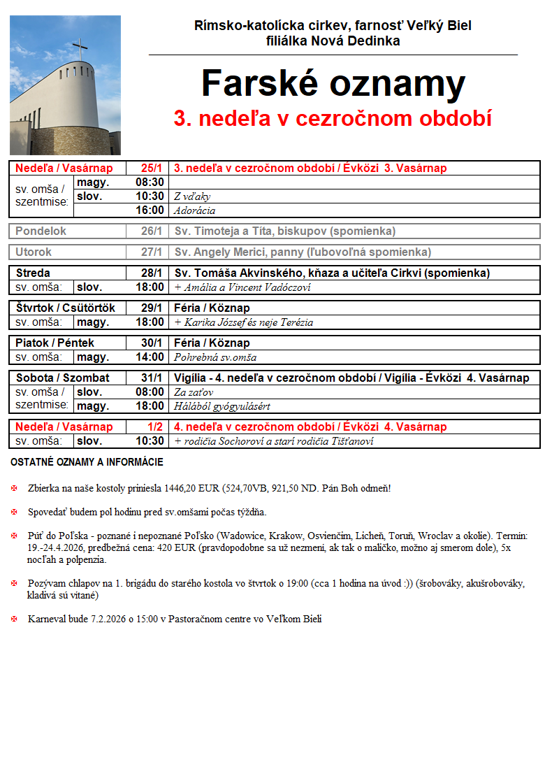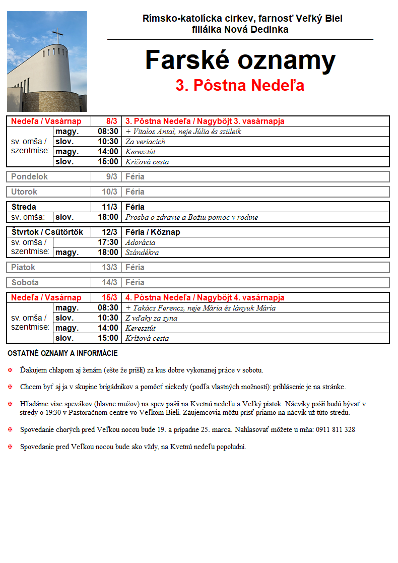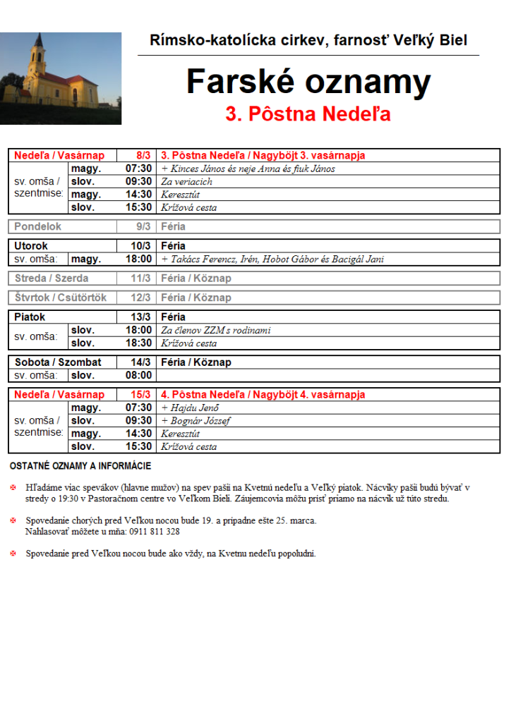 Sväté omše – oznamy